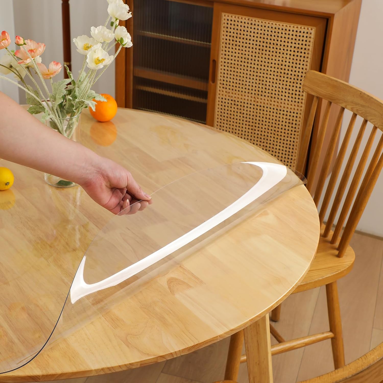 Upgrade your dining experience with our 2.0mm crystal-clear round table protector! Designed to be scratch-resistant, waterproof, and oil-proof, it offers heavy-duty protection while showcasing your table's beauty. Available in multiple sizes for perfect coverage. Easy to clean surface ensures effortless maintenance. Protect your table in style!